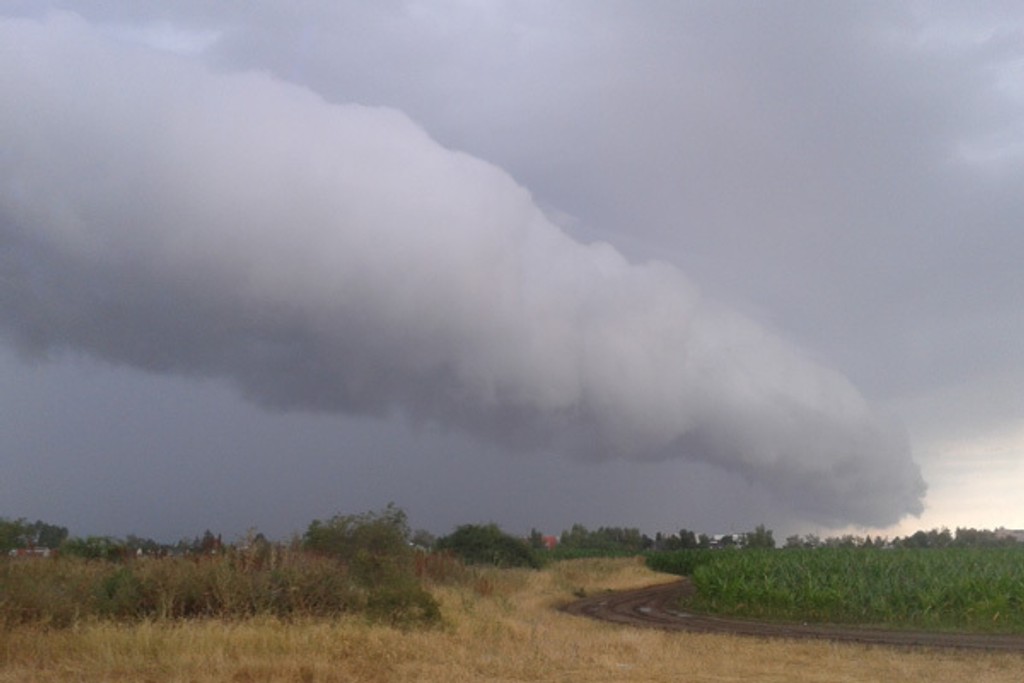 Podlhovastý oblak sa vytvoril počas dažďovej smršte.