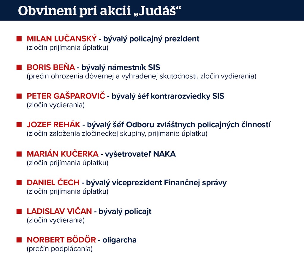 Sudkyňa všetkých siedmich obvinených v akcii Judáš, ktorý symbolizuje zradu, poslala za mreže. Peter Erdős, advokát bývalého šéfa kontrarozviedky SIS Petra Gašparoviča, nám povedal, že jeho mandant vinu odmieta, skutok nespáchal a žiadne peniaze neprijal.