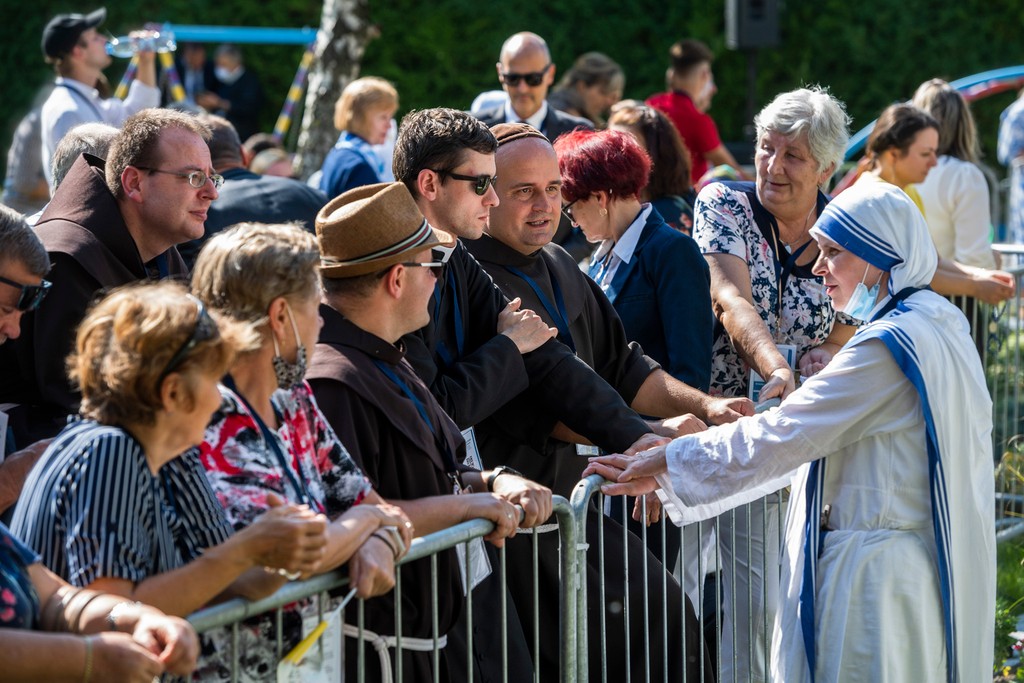 16.34 - Pápež vyšiel z centra, kde sa pozdravil s chorými, o ktorých sa sestry starajú. Spolu s prítomnými sa pomodlil modlitbu Zdravas Mária, udelil požehnanie a odovzdal rehoľným sestrám dar v podobe ikony Panny Márie. Pred odchodom ešte pristúpil najmä k deťom a hendikepovaným. Rozlúčil sa s prítomnými a odišiel na ďalšie stretnutie.