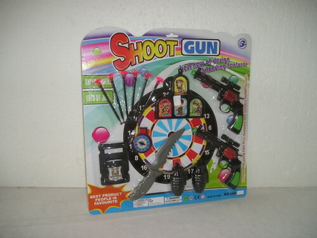 Policajný set obsahuje dve plastové pištole, šesť striel s prísavkou, dva granáty, kompas, nôž, policajný preukaz a terč. Jednotlivé časti sú zalisované do priehľadnej fólie. Zo striel sa oddeľujú prísavky, pričom ich rozmer je taký, že prejdú cez skúšobnú šablónu. Pri bežnom správaní detí pri používaní tejto hračky hrozí riziko zablokovania dýchacích ciest.