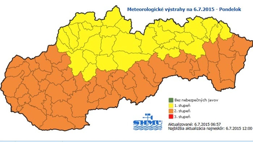 Začiatok týždňa bude poriadne horúci. Pripravte sa na to, že bude mimoriadne teplo. Schladí vás iba klimatizácia alebo studená voda. Dnes sa očakáva, že teplota môže na niektorých miestach vystúpiť až na 37 stupňov. Na Kysuciach, Orave, v Liptove a na Spiši bude okolo 30 stupňov. Na západe a severe sa môžu ojedinele objaviť búrky z tepla. SHMÚ vydal na dnes výstrahu 2. stupňa.
