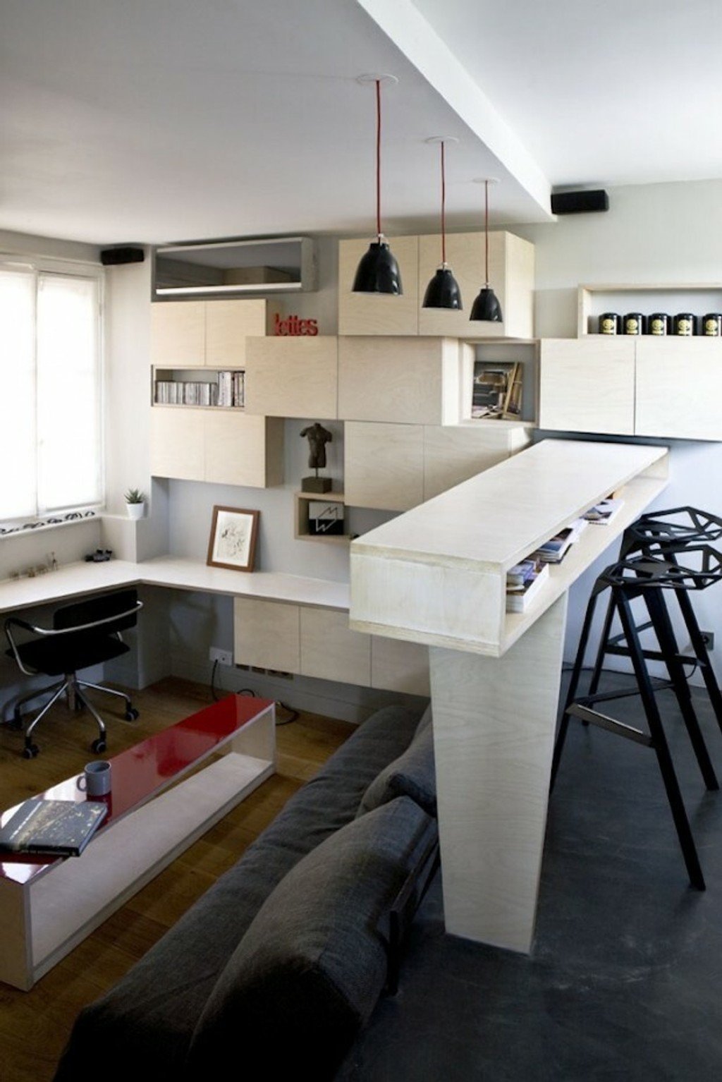 Je to inovatívny dizajn postele spojenej so sedačkou, ktorý ušetrí veľa miesta. Ak máte malý byt je mnoho spôsobov, ako váš priestor zväčšiť alebo aspoň nejaký ušetriť. Dvaja architekti Julie Nabucet a Marc Baillargeon sa pohrali s malou plochou, len 12 metrov štvorcových, a vytvorili tak