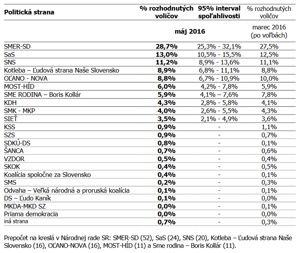 Vyplýva to zprieskumu verejnej mienky, ktorý na vzorke 1003 respondentov uskutočnila agentúra Focus vdňoch 3. – 9. mája.