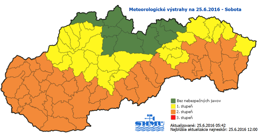 Na väčšine Slovenska aj naďalej platia meteorologické výstrahy pred vysokými teplotami, ktoré vydáva Slovenský hydrometeorologický ústav (SHMÚ).
