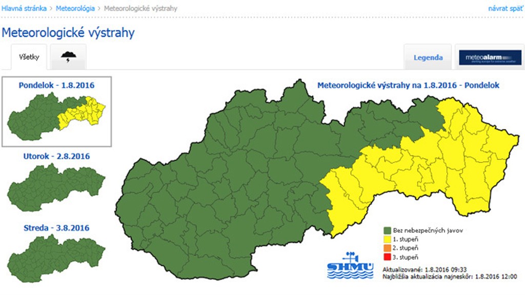 Výstraha pred búrkami pokračuje i počas dnešného dňa. Meteorológovia varujú pred dažďom ojedinele s krúpami najmä ľudí v Prešovskom a Košickom kraji.