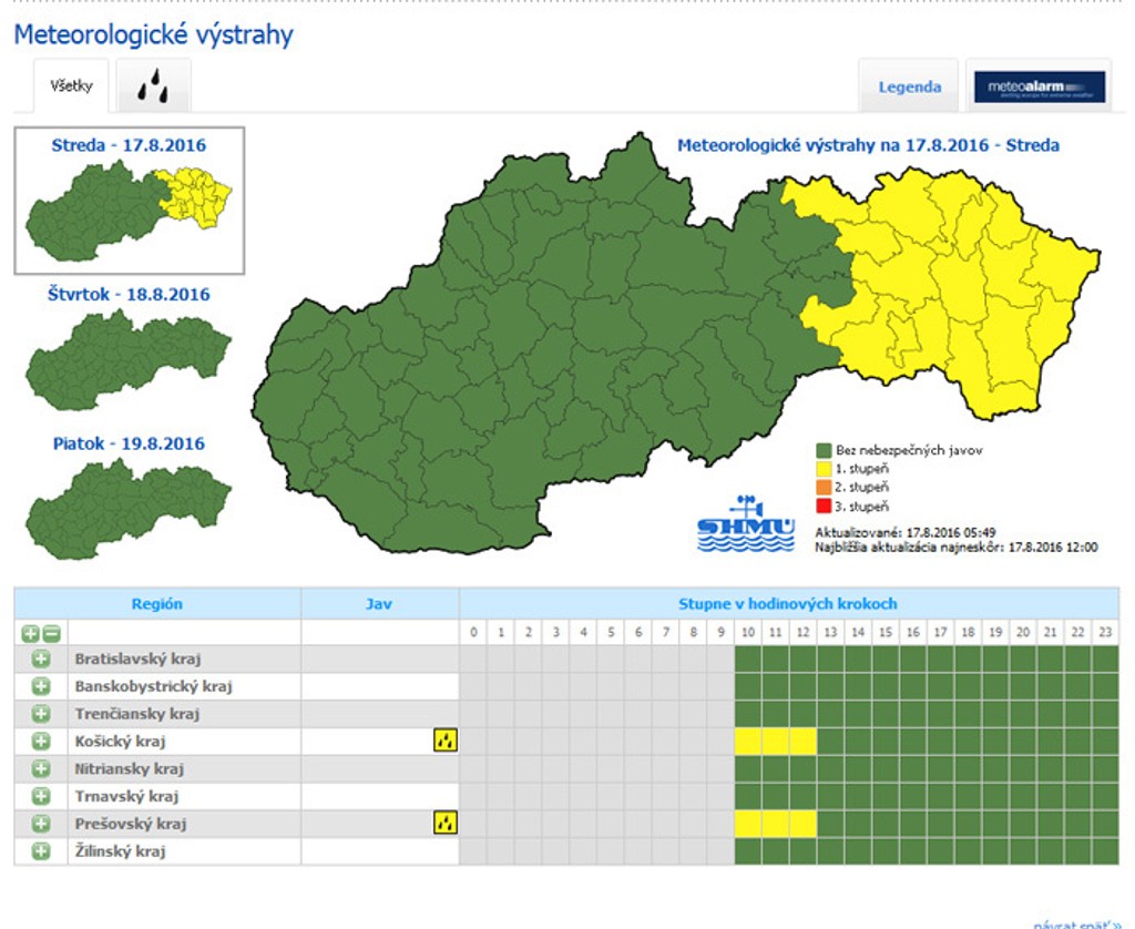 Meteorológovia upravili výstrahu 1. stupňa a zúžili ju iba na dva kraje - Košický a Prešovský, ktorá platí do 12.00 h.