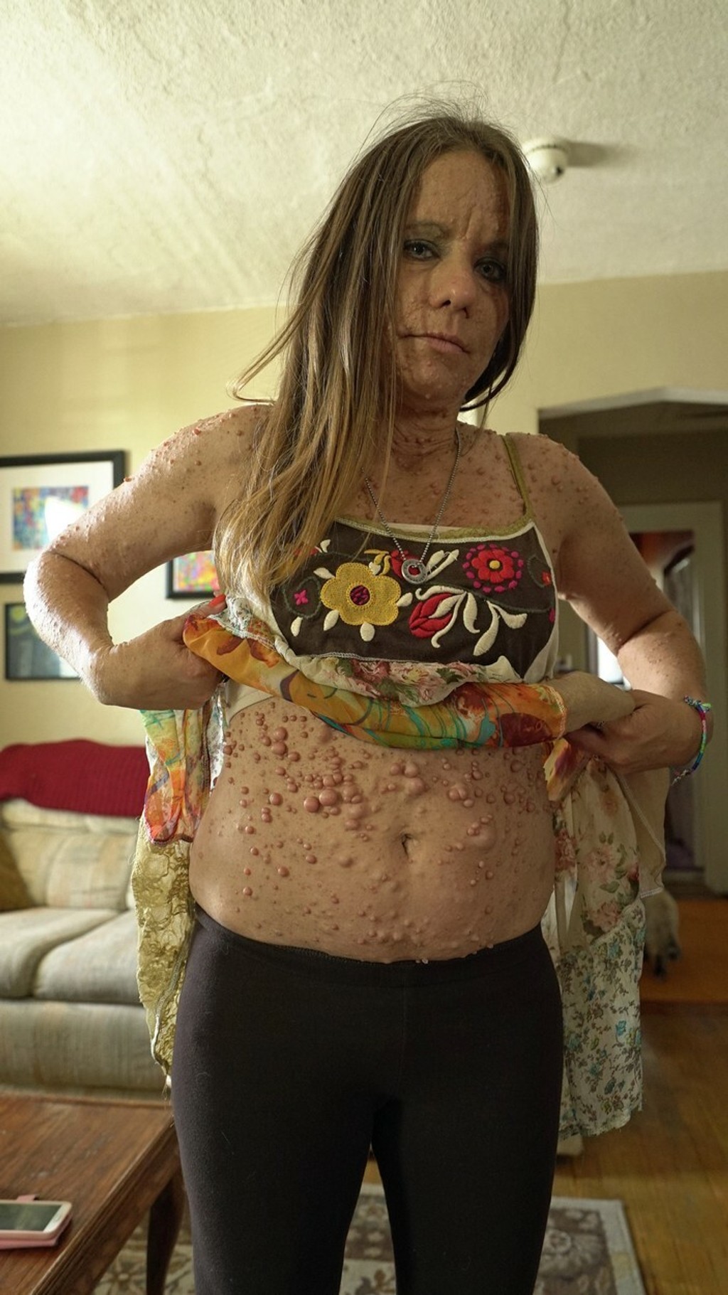 Skrývala sa za oblečením, zmenila si meno a pri prezývke jašterí dych sa jej vynárajú tie najkrutejšie spomienky. Libby Huffer (44) z Indiany má vzácnu diagnózu, ktorá jej strpčuje život. Na tele má viac ako 5 500 malých nezhubných nádorov, ktoré sú nie len odpudivé, ale aj bolestné.