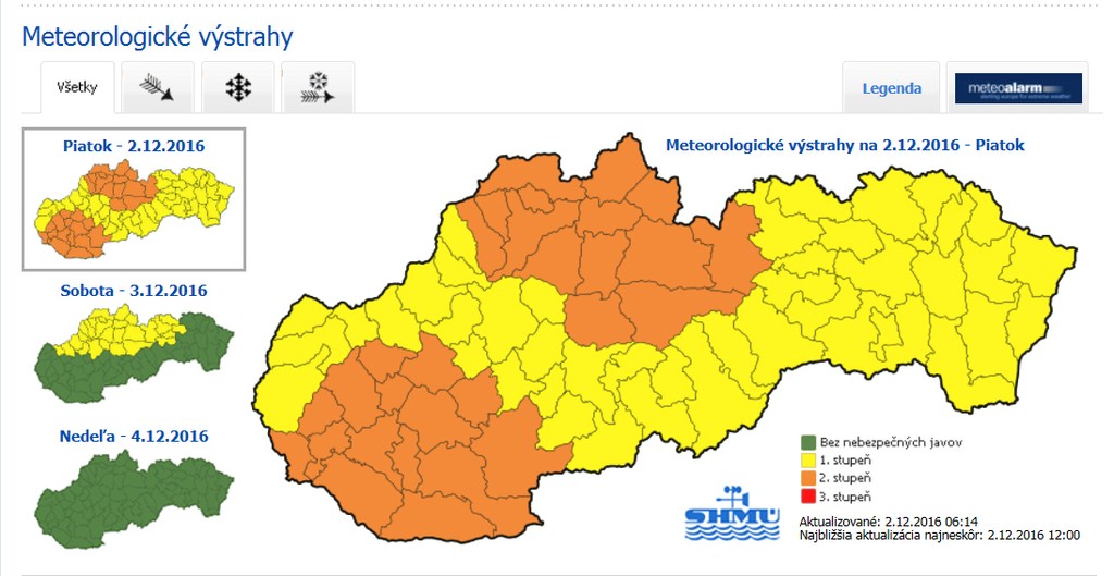 Slovenský hydrometeorologický ústav vydal výstrahy prvého a druhého stupňa. Pozrite sa, kde to bude najhoršie.