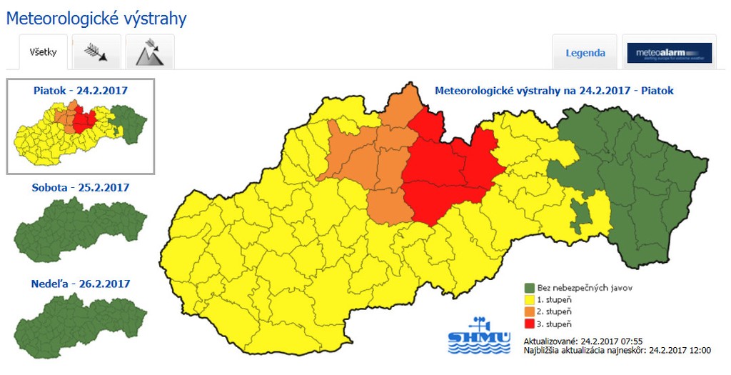 SHMÚ vydal výstrahu 3. stupňa. Prečítajte si, v ktorých okresoch to bude najhoršie.