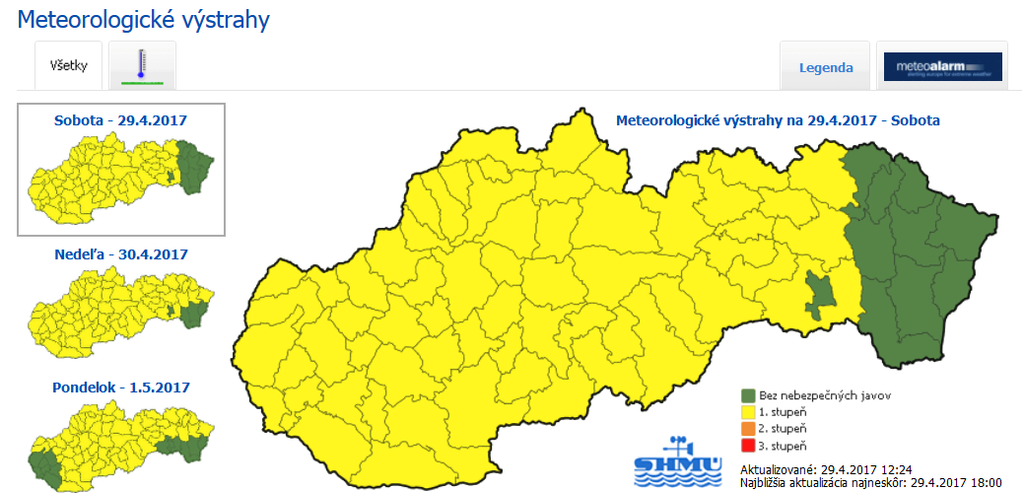 ústav (SHMÚ) vydal v tejto súvislosti výstrahu prvého stupňa.