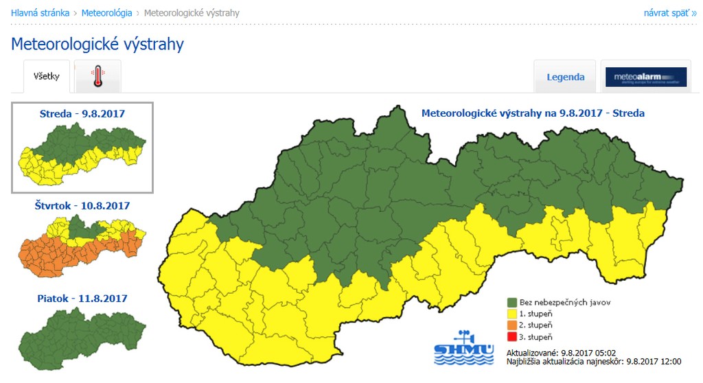 Západ a juh stredného a východného Slovenska dnes potrápia vysoké teploty. Slovenský hydrometeorologický ústav upozorňuje, že na týchto miestach môže teplota vystúpiť na 33 stupňov Celzia. Meteorológovia preto vydali výstrahu prvého stupňa pred vysokými teplotami, ktorá platí od 13.00 h do 18.00 h.