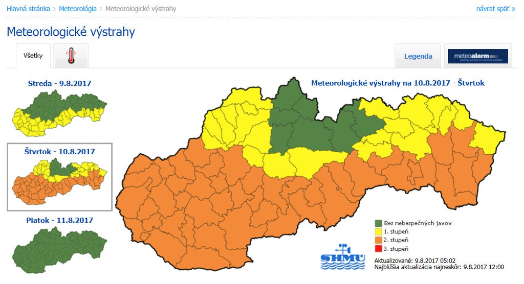 Zajtra bude jasno až polooblačno. Pri prechodne zväčšenej oblačnosti ojedinele prehánky alebo búrky - najmä na západe. Bude však mimoriadne teplo. Najvyššia denná teplota 33 až 37, na Orave, Liptove a Spiši okolo 31 stupňov.
