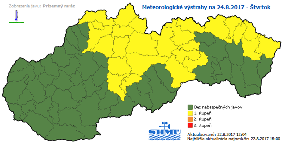 Výstrahy neplatia len pre severné okresy Slovenska.