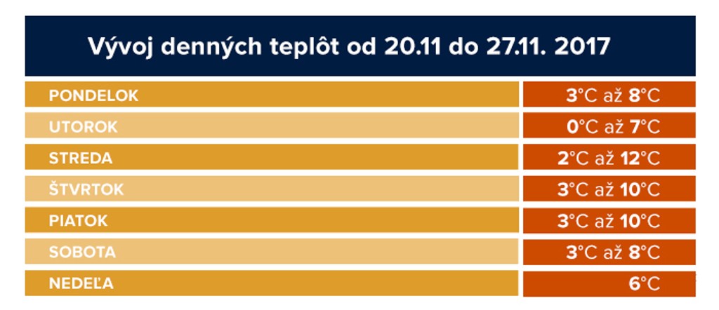 Po náročnom nástupe do pracovného týždňa, kedy sa ráno podobá skôr na pološero poobedných hodín, prichádza malá dávka nádeje. Podľa Slovenského hydrometeorologického ústavu nás v strede týždňa čaká výrazné oteplenie, meteorológovia sľubujú, že na niektorých miestach môže teplota vystúpiť až na 12 stupňov Celzia.