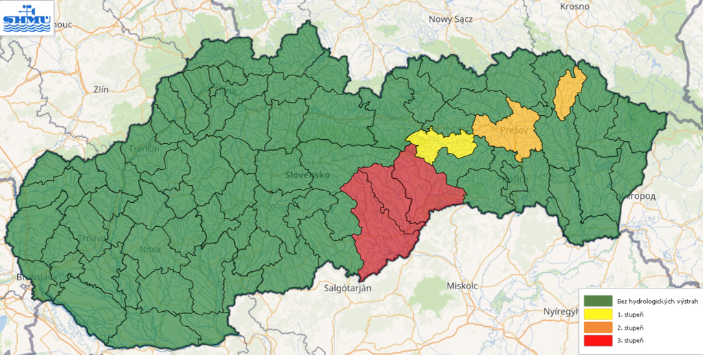 "Vzhľadom na predchádzajúce intenzívne zrážky po piatkových búrkach predpokladáme výrazný vzostup vodných hladín v dolných častiach povodia Slanej a Rimavy, na hlavných tokoch a ich prítokoch, s dosiahnutím a prekročením vodných stavov zodpovedajúcich stupňom povodňovej aktivity," uviedol SHMÚ.