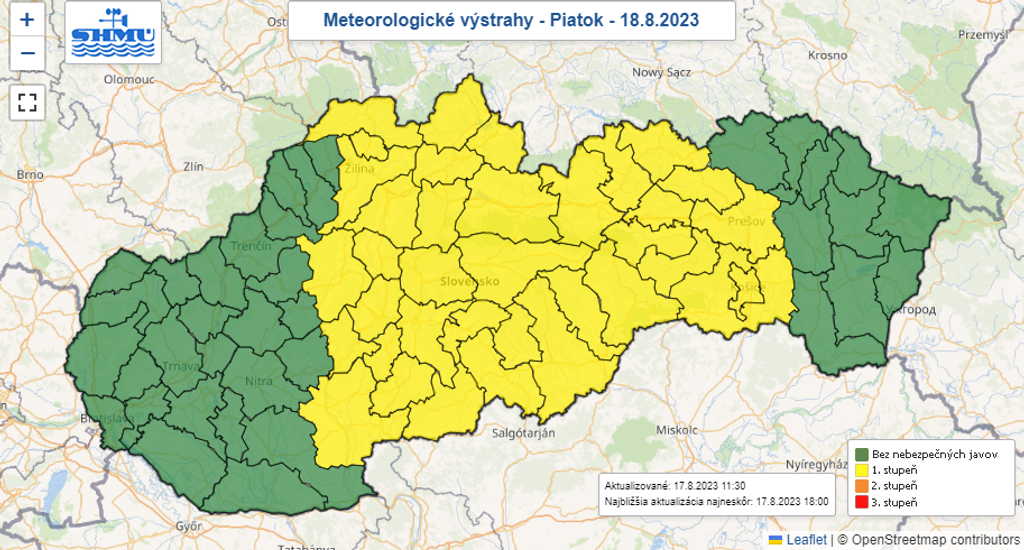 SHMÚ vydal výstrahu prvého stupňa pred búrkami na piatok (18. 9) pre celé stredné Slovensko.