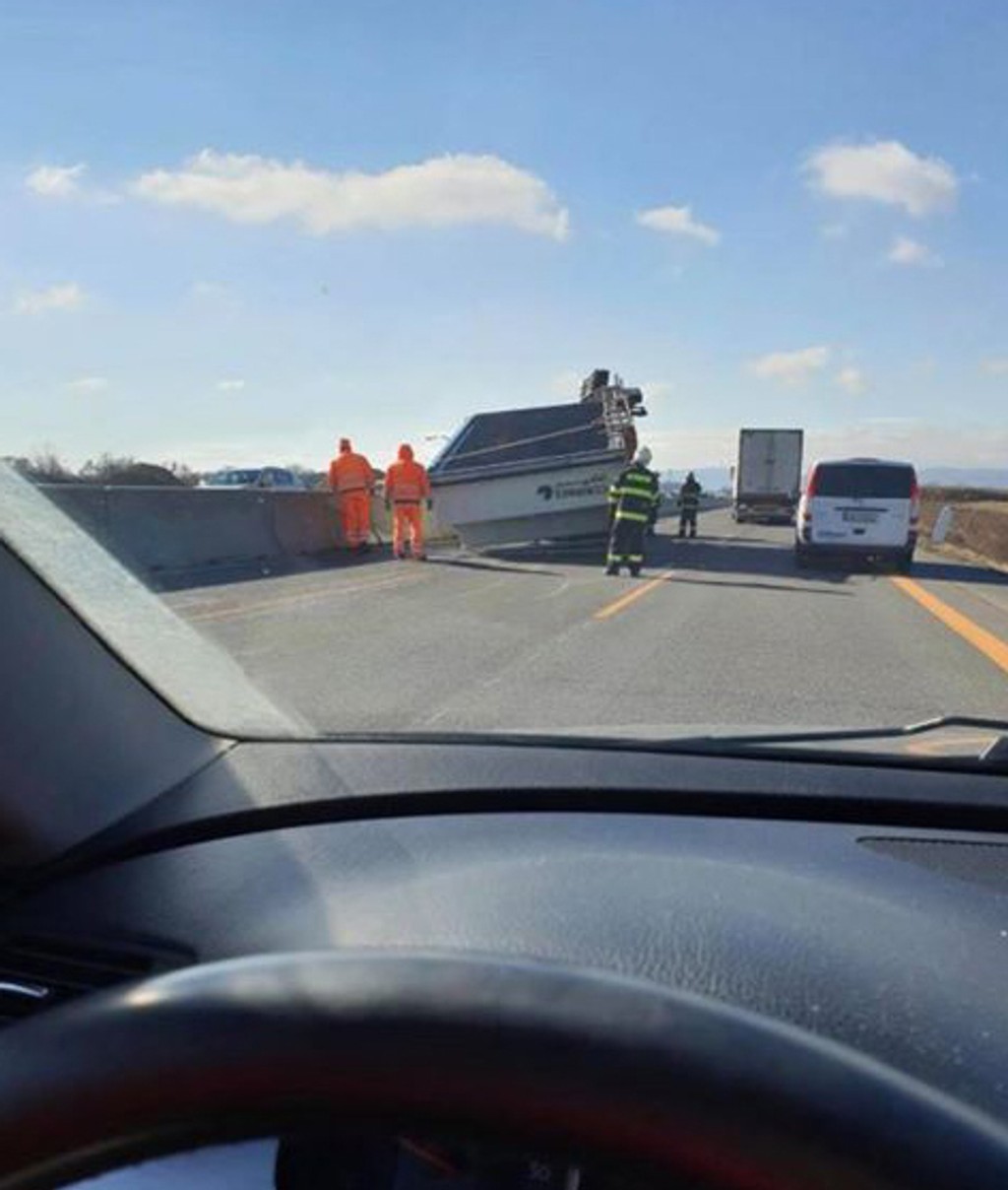 Na diaľnici D1 v smere zo Senca do Bratislavy havarovala dodávka prevážajúca bazén. Informovala o tom Zelená vlna RTVS.