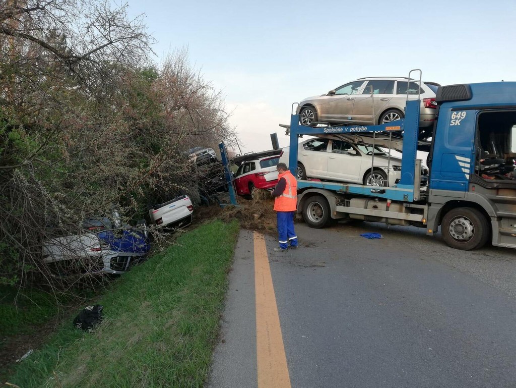 Pokúsil sa vrátiť naspäť na cestu, ale ťahač s návesom, ktorý prepravoval nové autá, sa skrížil. Pri manévri dve autá vypadli do priekopy, informovala Lucia Mihalíková z Krajského riaditeľstva Policajného zboru v Bratislave.