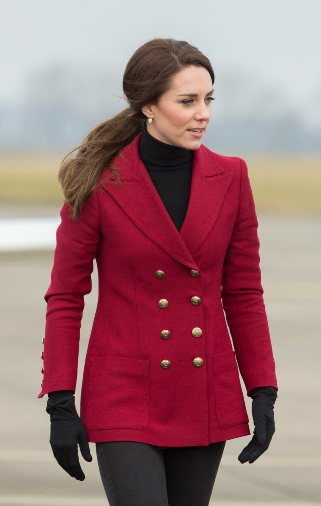 Kate mala na sebe tmavé obtiahnuté nohavice, kratší červený kabát a rukavice. Keď sa upravovala, kabát sa jej nadvihol a blesky fotoaparátov cvakali ostošesť. Nie každý deň sa naskytne pohľad na sexy pozadie členky kráľovskej rodiny.