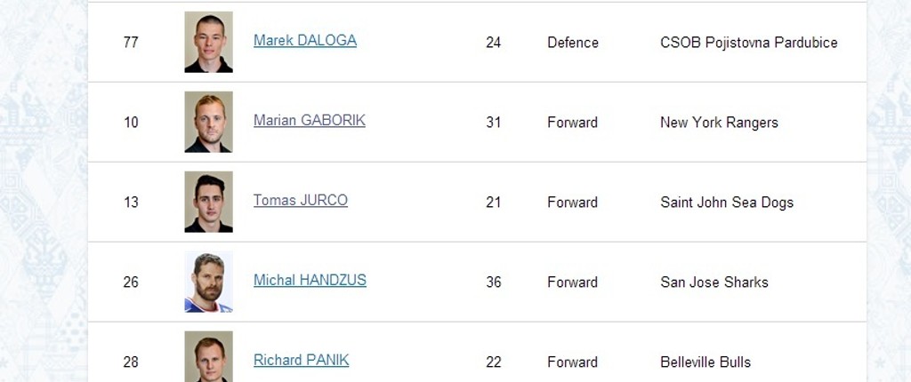 Na súpiske slovenskej hokejovej reprezentácie pre olympijský turnaj v Soči zverejnenej na oficiálnom webe podujatia je množstvo chýb. Rusi nezaznamenali viaceré posuny hráčov a uvádzajú pri menách hokejistov viackrát ich bývalé kluby, niektoré aj z dávnejšej minulosti.