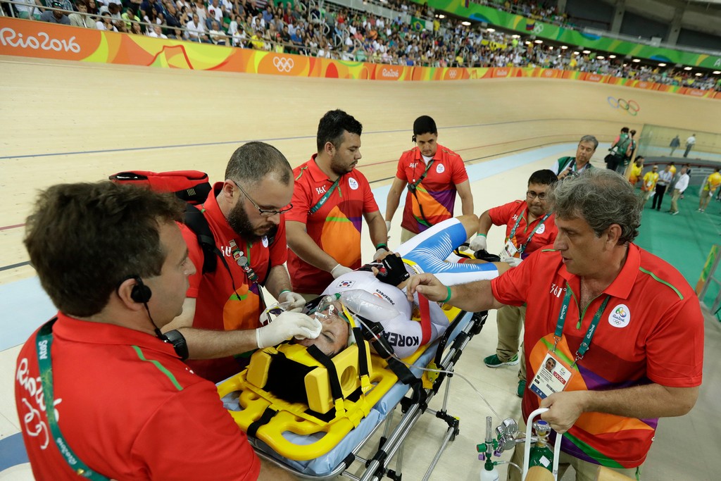 Park sa tesne pred zrážkou nachádzal na vnútornej strane záverečnej zákruty bodovacej časti disciplíny, Brit mu však vbehol do dráhy a "postaral sa" o nepríjemný pád. Súťažné preteky boli na chvíľu neutralizované, keďže záchranári ošetrovali Parka tesne vedľa dráhy.