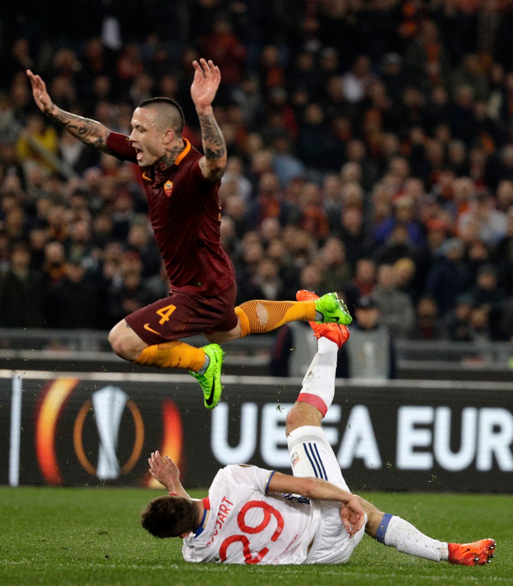 V šlágri večera AS Rím privítal Olympique Lyon. Taliansky vicemajster musel doháňať dvojgólové manko po tom, ako na francúzskej pôde prehral 2:4. V 60. minúte mu pomohol aj Lucas Tousart, ktorý si strelil vlastný gól a poslal domácich do vedenia 2:1. Rimania si potom vytvorili enormný tlak, ale postupový gól sa im už streliť nepodarilo.