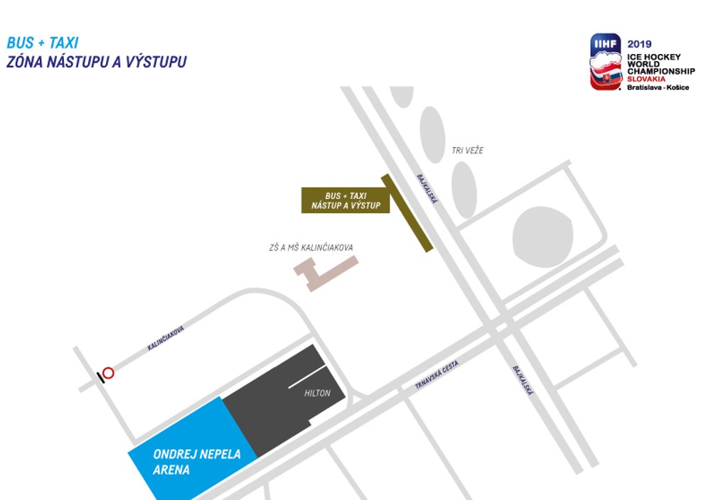 - Fanzóna pre hokejových fanúšikov bude zriadená na Trnavskom mýte pri výškovej budove Istropolisu priamo pri prestupnom uzle MHD Trnavské mýto a len cca 700 metrov od Zimného štadióna Ondreja Nepelu. Nachádzajú sa tu zastávky liniek 2, 4, 8, 9, 39, 51, 53, 61, 63, 64, 68, 74, 78, 201, 204, 209.