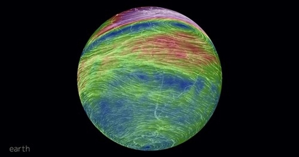 V aplikácii si každý môže na mape nájsť svoju krajinu a zistiť, ako tam fúka vietor. Na zemeguli je vidieť päť hlavných prstencov, ktoré predstavujú veľký systém točivých morských prúdov. Jeden sa nachádza v Indickom oceáne, ďalšie na severe a juhu Pacifiku a Atlantiku. Sú jasne viditeľné a ich vplyv možno sledovať po celom svete.