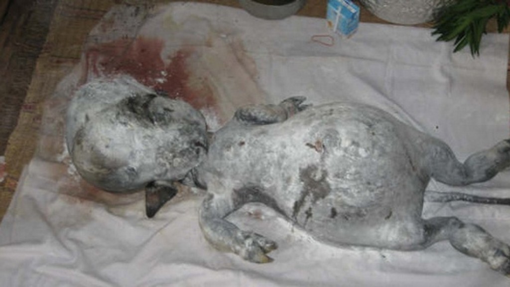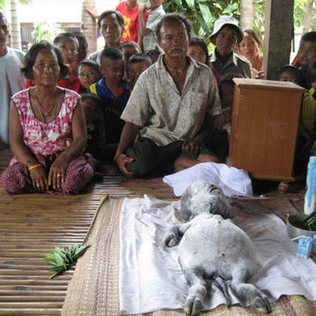 Záhadné zviera má veľkú hlavu, trup s veľkým bruchom a končatiny s kopytami. Narodilo sa už mŕtve. Napriek tomu ho všetci uctievajú. Majiteľ ho položil vo svojom dome na čestné miesto na rohož a zapálil pri ňom sviečky.