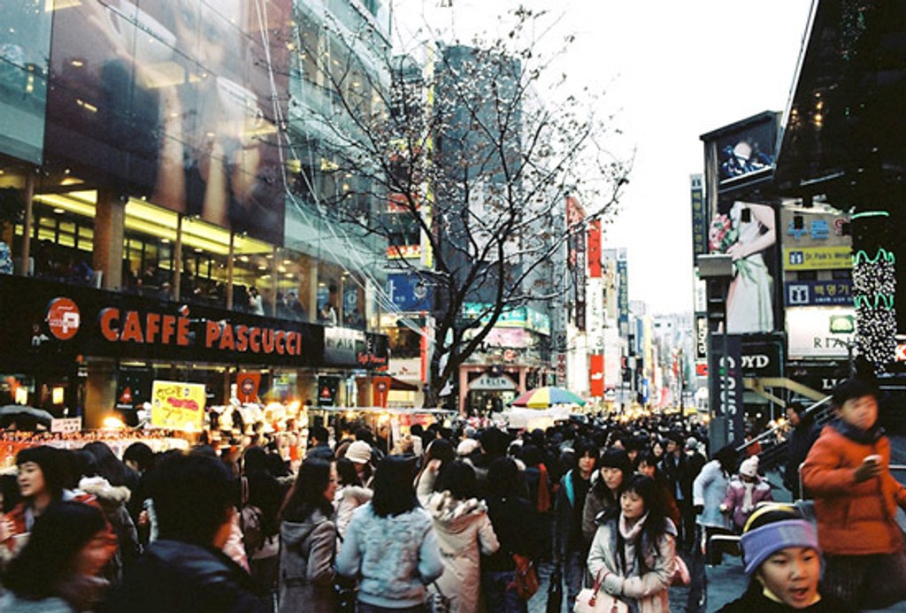 • Južná Kórea: obchodná ulica Myeongdong, Soul