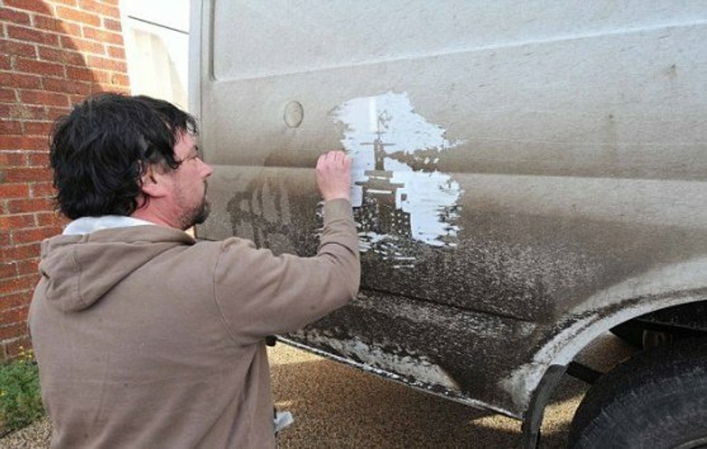 Namaľovať taký obraz mu zaberie tak 10 minút. Vždy po niekoľkých dňoch maľbu zotrie a potom čaká, až bude dodávka opäť dostatočne špinavá. "Je to trochu frustrujúce. Našťastie veľa jazdím po dedinských cestách, takže to netrvá až tak dlho," smeje sa talentovaný otec troch detí.