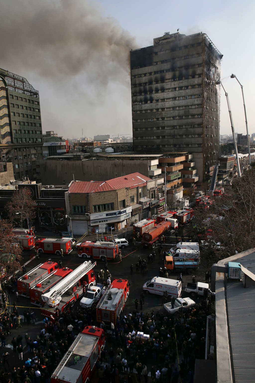 Horiaca výšková budova v Teheráne sa zrútila práve v čase, keď proti plameňom bojovalo množstvo hasičov. Podľa televízie Press TV zostali pod troskami uviaznutí mnohí ľudia.