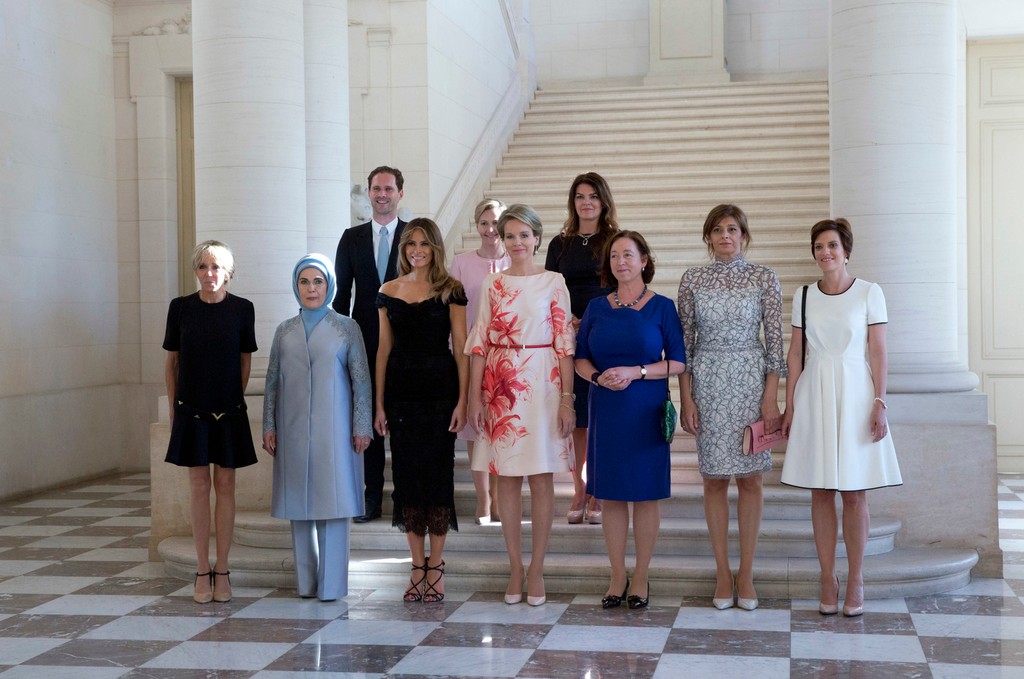 Na zábere nechýbal ani manžel luxemburského predsedu vlády Xaviera Bettela, Gauthier Destenay. Prvý pán stojí na fotke za prvou dámou Spojených štátov Melanie Trumpovou a manželkou tureckého prezidenta Tayyipa Erdogana, Emine, ktorá nevyzerala veľmi nadšene. Píše Daily Mail.