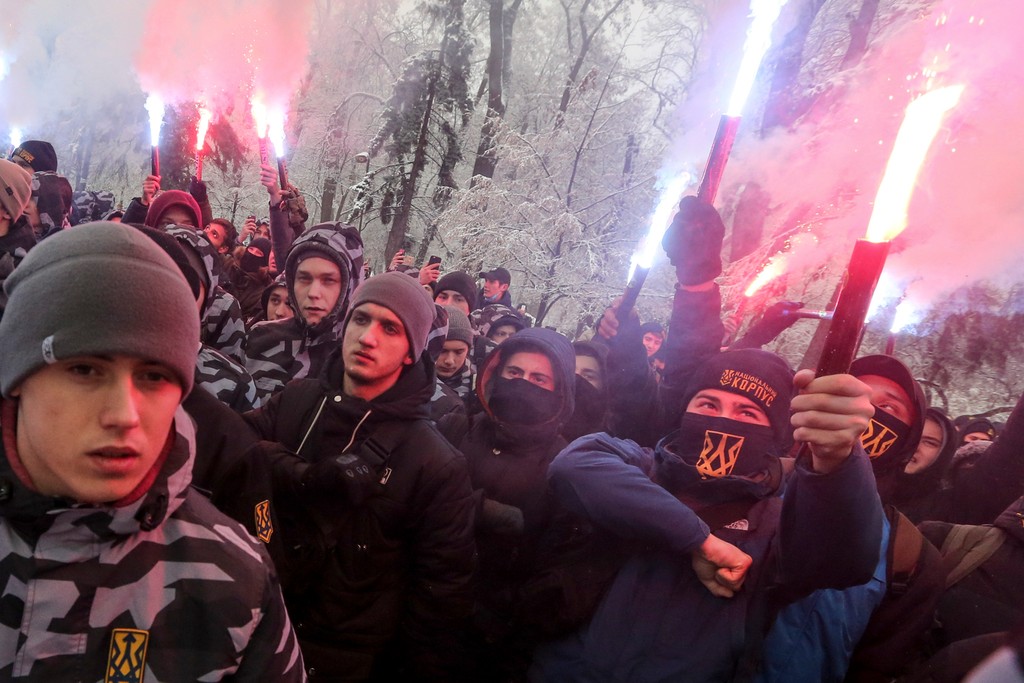 Okrem toho sa večer pred veľvyslanectvom zhromaždilo niekoľko desiatok ľudí, ktorí skandovali "Smrť Rusku!" a hádzali smerom k budove dymovnice. Podľa očitých svedkov účastníci akcie na plot okolo areálu rozvešali aj loďky poskladané z papiera na protest proti námornému incidentu z nedele.