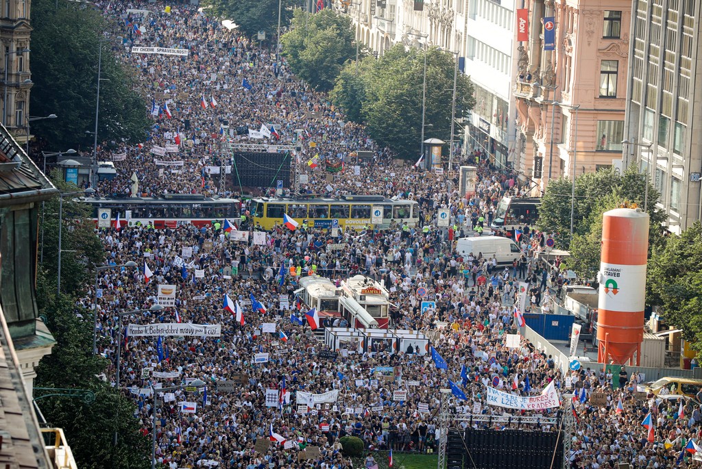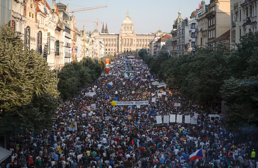 Okolo 100 000 ľudí sa v utorok zišlo na Václavskom námestí v centre Prahy, aby žiadali demisiu premiéra Andreja Babiša, informovala agentúra AFP, ktorá dodala, že ide o najväčšiu demonštráciu v Česku za posledné desaťročia.