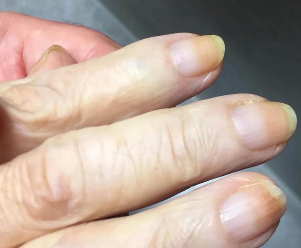 Zaujímavé je, že špičky nechtov sa jej sfarbili dožlta až 16 týždňov po pozitivite, pričom trvali asi mesiac.